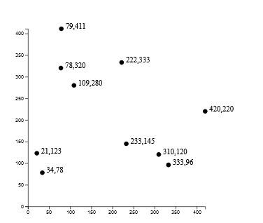 When you place a shape into the svg area, you can specify where it goes with x and y coordinates. The origin point of (0, 0) is in the upper-left corner. Positive values for x push the shape to the right, and positive values for y push the shape down from the origin point.