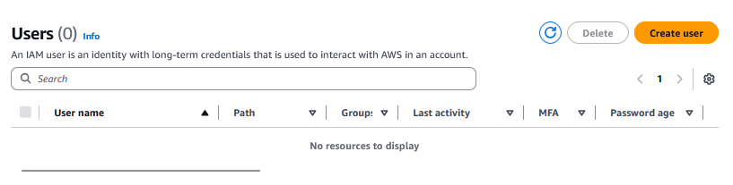 No IAM clique em “Criar usuário” para começar.