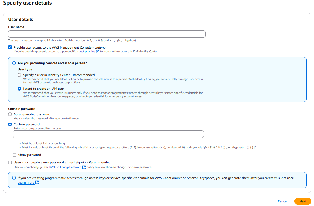 Selecione: “Provide user access to the AWS Management Console”.