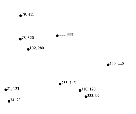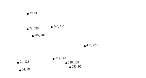 When you place a shape into the svg area, you can specify where it goes with x and y coordinates. The origin point of (0, 0) is in the upper-left corner. Positive values for x push the shape to the right, and positive values for y push the shape down from the origin point.